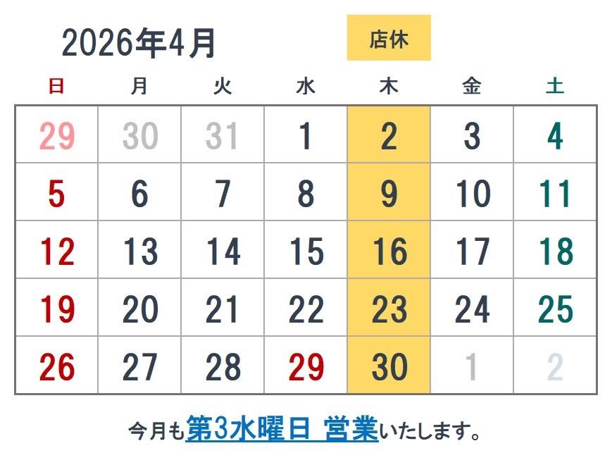 | 実店舗の営業カレンダー |